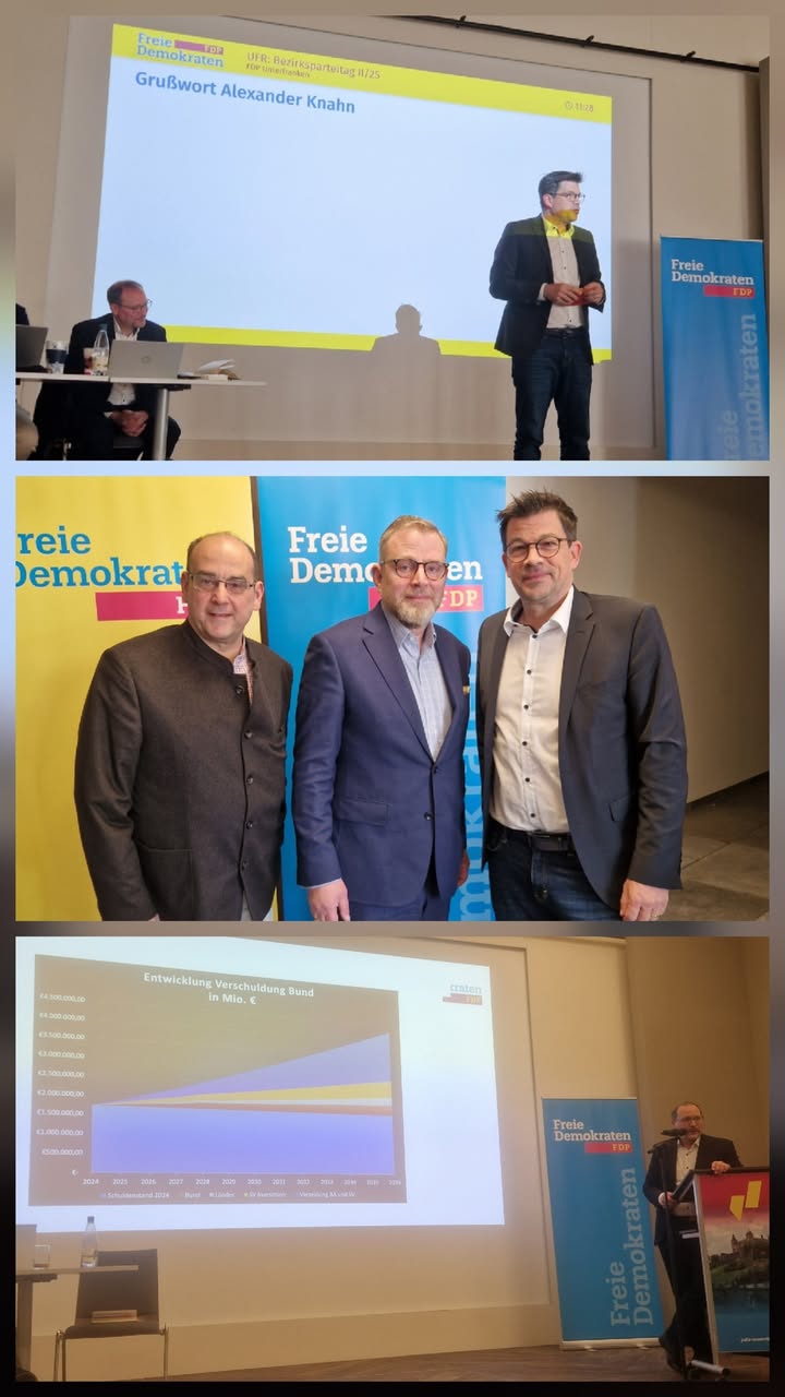 Kulturscheune Höchberg : 23.11.25 Bezirksparteitag der FDP Unterfranken . Wir danken unserem BGM Alexander Knahn für die eröffnende Gastrede! Unser Generalsekretär der FDP-Bayern und Co-Vorsitzender der FDP-Unterfranken Karl Graf Stauffenberg und unser Co-Vorsitzender der FDP-Unterfranken MdB a.D. Karsten Klein eröffneten und leiteten den Parteitag. Auf dem Parteitag wurden die Leitlinien kommunaler Arbeit der FDP-Unterfranken für die nächsten Jahre beschlossen. Zudem wurden viele Anträge behandelt, die Ausdruck der Eigenständigkeit und Souveränität des Einzelnen, sowie ein freiheitlich gemeinschaftliches Leben wiederspiegeln. Kommunale Leitlinien und einzelne Beschlüsse (z.B. zur selbstbestimmten "Sterbehilfe", Gleichberechtigung im Militärdienst als auch Anpassung zu gerechter Krankenkassenfinanzierung) werden in Kürze auf der Internetseite fdp-unterfranken.de zu finden sein.